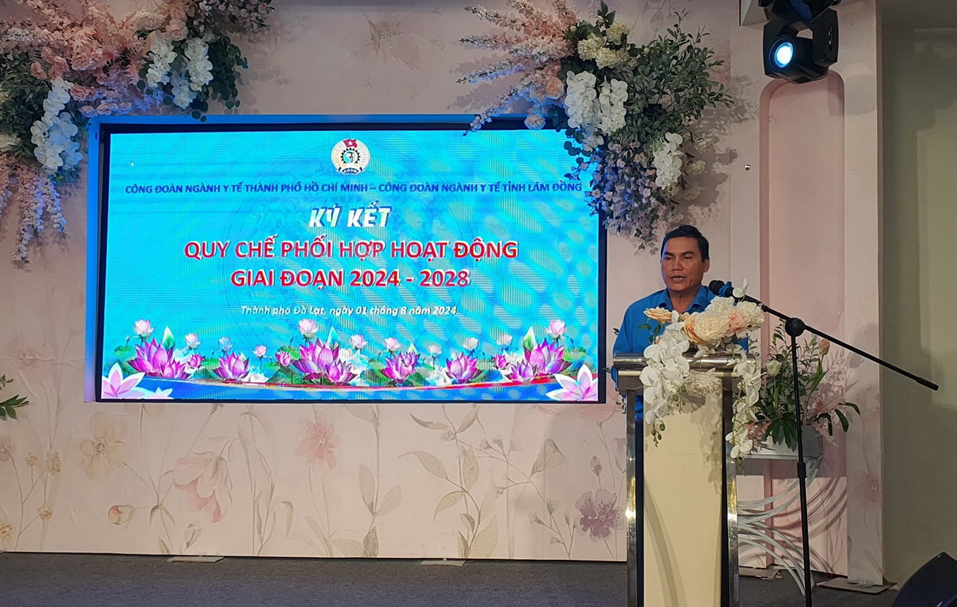 Nhấn mạnh về ý nghĩa và tầm quan trọng của việc ký kết Quy chế phối hợp hoạt động giữa 02 đơn vị, đồng chí Trần Đăng Công Nghĩa - Chủ tịch Công đoàn ngành y tế Thành phố Hồ Chí Minh phát biểu: “Việc ký kết phối hợp hoạt động giữa 02 đơn vị sẽ tạo điều kiện tốt hơn cho việc thực hiện Nghị quyết Đại hội Công đoàn các cấp; từ đó, việc chia sẻ kinh nghiệm hoạt động sẽ giúp cho công tác Công đoàn và các phong trào thi đua của ngành y tế được phát triển mạnh mẽ, đạt được nhiều thành quả trong thời gian tới. Bên cạnh đó, sự hỗ trợ lẫn nhau trong các hoạt động của 02 đơn vị tạo nên tinh thần đoàn kết, gắn bó chặt chẽ trong đội ngũ ĐVCĐ-NLĐ của 02 tỉnh/thành”